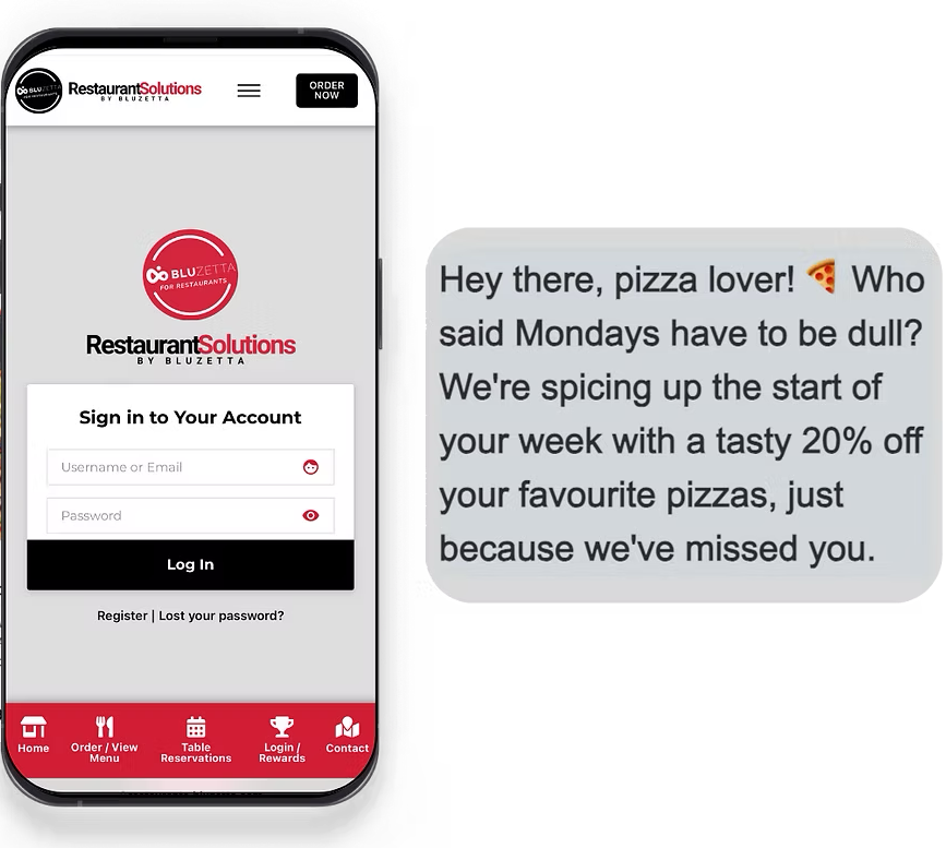 Encourage repeat orders and visits particularly on quieter days, and cut out Uber, Just eats and other commission fees. Have your own booking, order & loyalty reward website & mobile app without high costs or on-going fees.